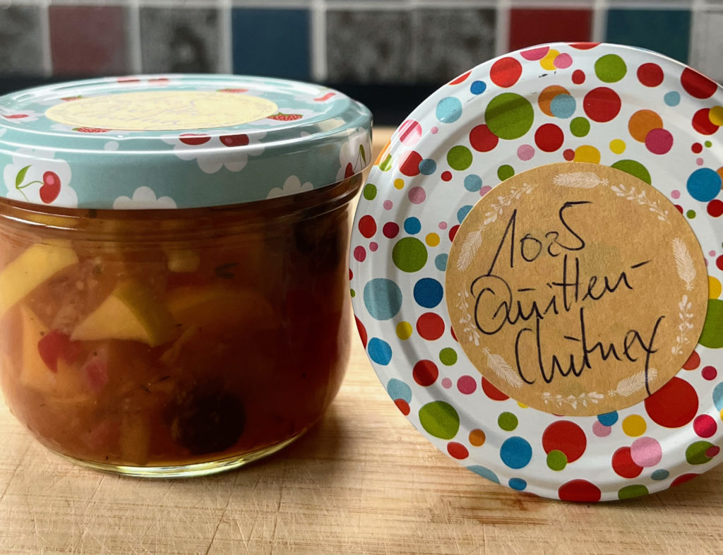 Dieses Chutney hat den intensiven Geschmack der Quitten gepaart mit der Säure von Apfel und Apfelessig. Einfach herrlich.